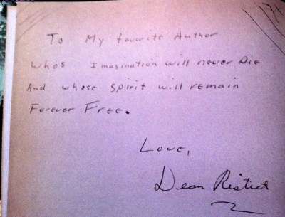 | “To my favorite author, whose imagination will never die and whose spirit will remain Forever Free.” |