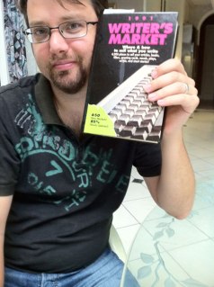 I went to my parent’s house last week to interview my father for his biography, and I ended up rummaging through the attic again to find a real treasure, the Writer’s Market 1991. It was from my first real stab at publication. I sent four query letters for my first novella, Dynotus Adventures, the story of a Greek demigod from an alternative Earth. It went something like this: After the gods of all the world’s pantheons duke it out for supremacy, only Zeus and Thor remain. In a titanic battle, the two gods kill each other off, and a child is born from Zeus and Amaterasu Omikami (of the Japanese Shinto religion). Their offspring, Zor, inherits Thor’s hammer and becomes the supreme god of the universe. As is the tradition of all Greek heroes, Zor has his way with a mortal woman, and she gives birth to Dynotus. Did I mention I was a weird 14 year old? Needless to say, this masterpiece of literature was never accepted by the four publishers I queried. But deep down, I knew my writing wasn’t quite ready for the world, so I set my dreams aside to further hone my skills. As for the Writer’s Market, it lay forgotten until last week. In back of the cover, I found this inscription: