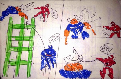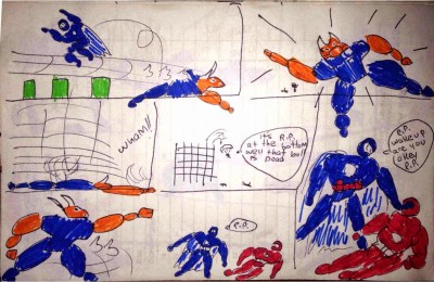 A lot of you may not know this, but I pretty much created The Mighty Morphin’ Power Rangers, except that I called them The Panthers. It was a team of martial-arts superheroes that sometimes drove around in giant mech/robots. The leader was all in red, while his allies wore other primary colors, like blue and green. And just like Rangers, they even wore helmets! If only the receptionist at DC Comics headquarters had bothered to take me seriously, when I was nine, DC would now own the rights to Power Rangers!