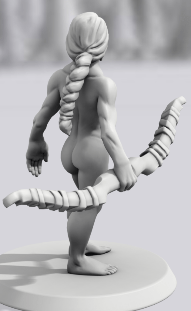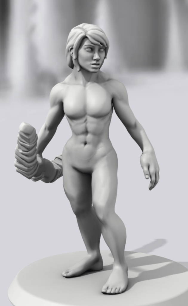 Also, if you are in need of a figure for your game, look no further than Hero Forge! With Hero Forge, you can custom design any character you can imagine, even a badass heroine who doesn’t wear any clothes! The below example is my interpretation, but feel free to make your own.