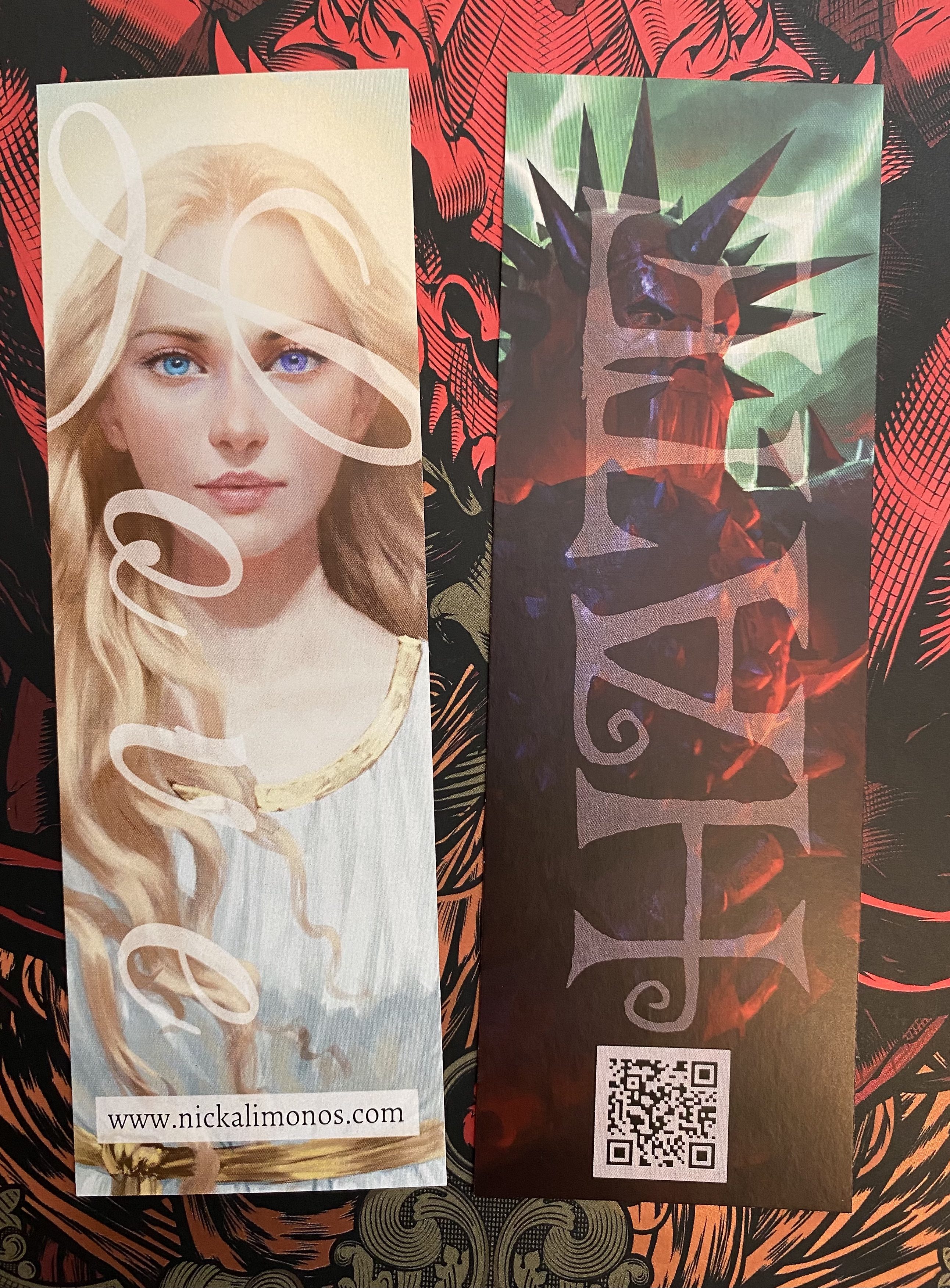 What’s more, I jump into the modern age with a QR code that links readers directly to my author site www.nickalimonos.com. Want the new bookmark but already own a copy of the book? Don’t be sad! I throw bookmarks in with every customer purchase, so if you order anything new from my site, like the upcoming The Feral Girl, I’ll be sure to send one out for free.