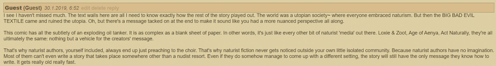 Sorry for YET another rant—I really didn’t want to do this, I swear—but I recently stumbled upon an article in Planet Nude about ‘nudist media,’ and came across this comment: