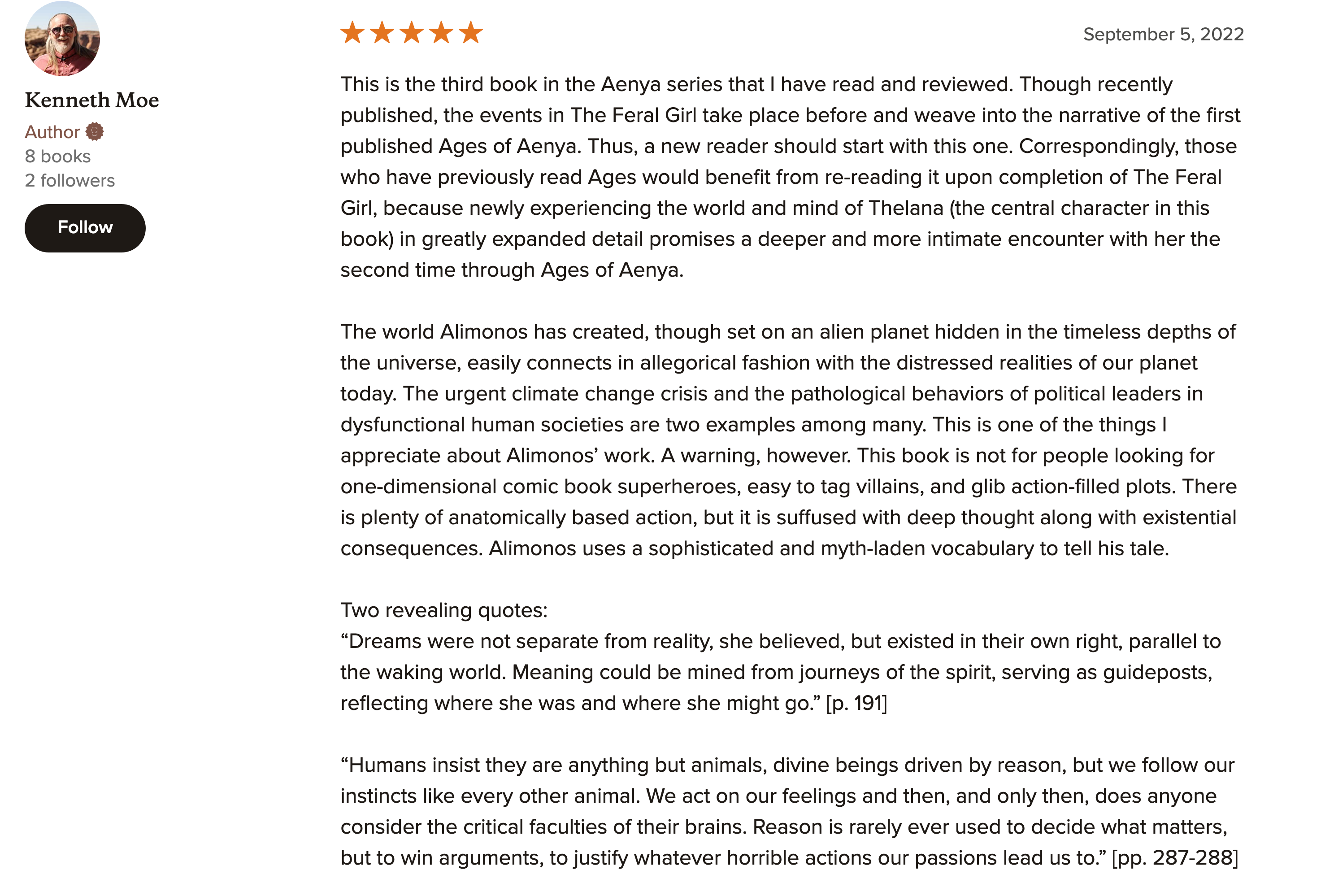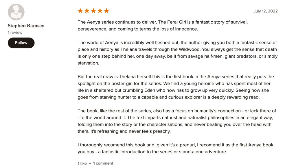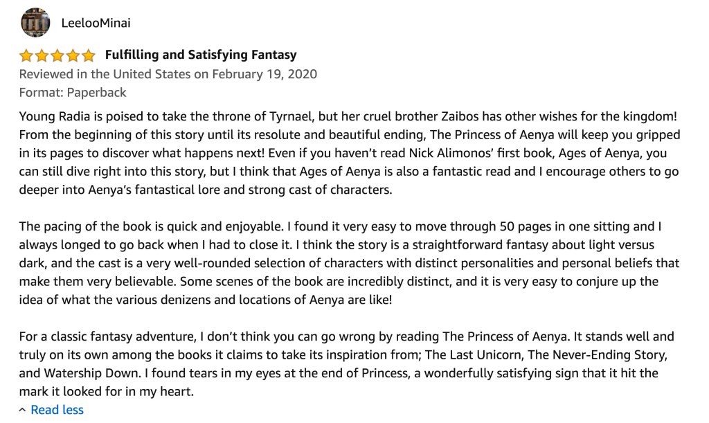 Review for The Princess of AenyaReview for The Feral GirlReview for The Princess of AenyaReview for The Princess of AenyaReview for The Princess of Aenya